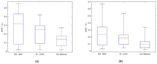 A comprehensive comparison was conducted among the ES-EKF method, the R-UVIS method, and our method, with the findings presented in Figure 14.