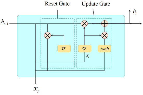 To determine the retention of historical information, this framework employs a GRU module with an incorporated residual connection. The diagram of the reset gate and update gate in the GRU module is shown in Figure 5 and the specific parameters are as follows: