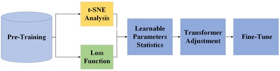 where, and are learnable parameters intended to manage the contribution of each data domain feature for adaptive feature fusion. The whole process needs to go through a pre-training process, which is shown in Figure 7. In a similar manner, high-level feature fusion of these data domains can be achieved by following the aforementioned steps. This fitting method for learnable parameters based on pre-training integration is combined with t-SNE analysis and loss function analysis. Given the linear relationship between and , the proposed method performs parameter fitting under full polarization.
