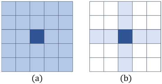 Unlike previous attention mechanisms, the traditional MLP (Figure 5a) is replaced by sMLP in this study, as this addresses two major drawbacks of the traditional MLP. In this respect, we aimed to reduce the number of parameters to avoid overfitting and sought to reduce computational complexity (especially with a large number of input cells) to achieve multi-stage processing in a pyramid structure.