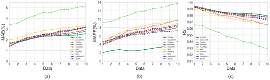 The results showed that the indicators varied slightly from year to year. The minimum MAE is 1.937% in 2018, the minimum MAPE is 3.313% in 2021, the minimum RMSE is 5.715% in 2018, and the maximum is 0.98 in 2018. The average MAE, MAPE, RMSE, and values were 1.988%, 3.541%, 5.843%, and 0.979, respectively. The STDNet model demonstrated a good prediction performance, with low error and high accuracy.