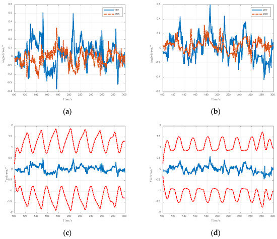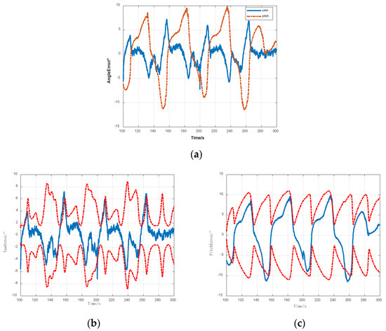 Moreover, Figure 9b,c illustrates that the two-dimensional direction error of the signal source basically conformed to the envelope of the line, and the error gradually converged to approximately zero.