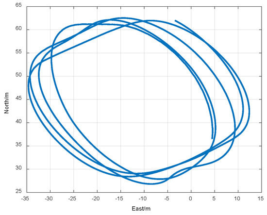 Real-time observation data were collected with the Sinan dual-antenna board. The high-precision attitude information associated with the reference position was obtained via the integration of high-precision inertial navigation and satellite navigation. The vehicle hovered in a nearly horizontal field with the circle-shaped trajectory.