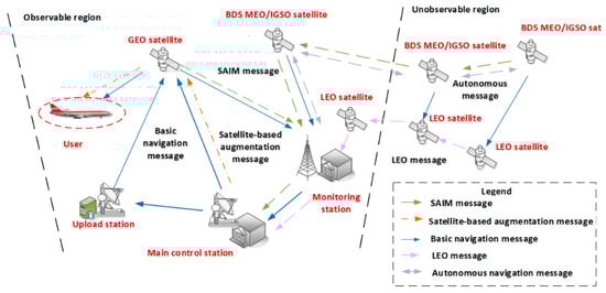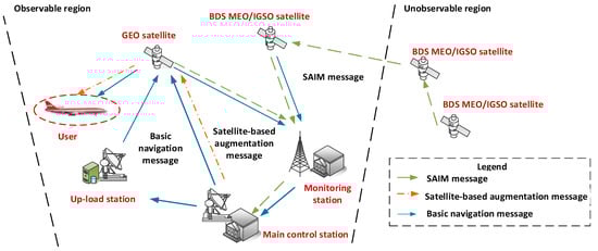 Satellite-to-ground observation links are mainly used to gain observation data from satellites and broadcast basic and satellite-based augmentation messages to satellites. The corresponding stations consist of the main control station, upload stations, and monitoring stations. All observation data and returned messages should be collected and gathered in the main control station. Then, basic and augmentation integrity parameters can be generated and broadcast through satellite-to-ground and inter-satellite links.
