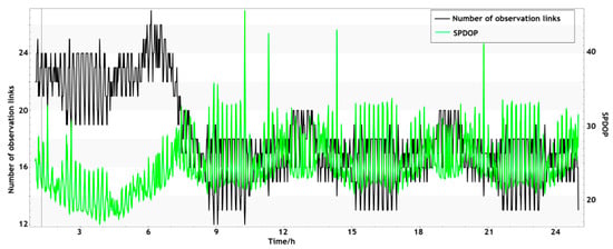 Figure 11. Number of available links and SPDOP values in scenario 1.