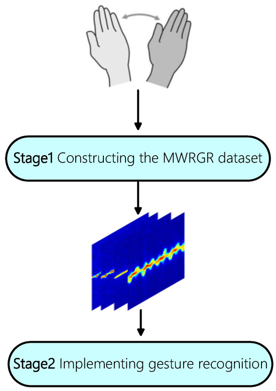 With the development of artificial intelligence, gesture recognition technology is used in many fields such as intelligent transportation, healthcare, and entertainment. At present, traditional gesture recognition techniques primarily utilize both contact-based and non-contact devices to recognize gestures. Contact devices are costly and inconvenient to carry, limiting their practical applications [1,2]. In contrast, there are many applications of contactless devices, such as cameras [3], Wi-Fi [4], radar [5,6], and other devices used for data collection. However, cameras usually have the potential to violate personal privacy. In addition, it is susceptible to adverse environmental influences. Similarly, Wi-Fi also has some limitations, such as signal attenuation and electromagnetic interference, which can reduce its recognition accuracy. Furthermore, if there is a large delay in the network, the recognition efficiency will decrease. Millimeter-wave radar offers several benefits over traditional sensors, including higher distance resolution and higher angle resolution, better resistance to interference, a more compact design, enhanced privacy, and reliable performance in all weather conditions. Especially for small gestures, millimeter-wave radar can provide high-resolution images that can capture the subtle movements and details of gestures. This high resolution enables millimeter-wave radar to have high precision in gesture recognition.
