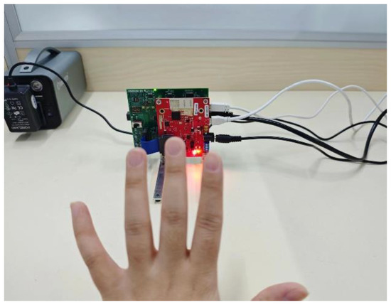 We meticulously collected six distinct gestures: wave, pinch, click, clap, circle, and swipe; each of them is a common hand movement that can be detected and recognized using a millimeter-wave radar. Here, to ensure the generalization and robustness of our dataset, we carefully selected a diverse group of 12 participants, varying in body types, to participate in the data acquisition process. This approach aimed to capture a wide range of movement patterns and physical characteristics, thereby enhancing the adaptability of our recognition system. Each participant was instructed to repeat each action 30 times, ensuring consistency and reliability in the data. A comprehensive dataset containing 2160 samples was created by multiplying the number of participants, the number of repetitions per gesture, and the total number of gestures. The actual radar gesture echo acquisition scene is displayed in Figure 2. As shown in Figure 2, it can be seen that the setup where participants performed the gestures was under controlled conditions, ensuring accurate and consistent data collection. The millimeter-wave radar and data acquisition card were connected to a portable power bank, which enabled data acquisition in different scenarios. During the data collection process, the distance between the hand and the millimeter-wave radar was controlled between 20 and 30 cm. This meticulous data collection process laid the foundation for the development and training of our LPVT network, facilitating its ability to accurately recognize and distinguish between different gestures.
