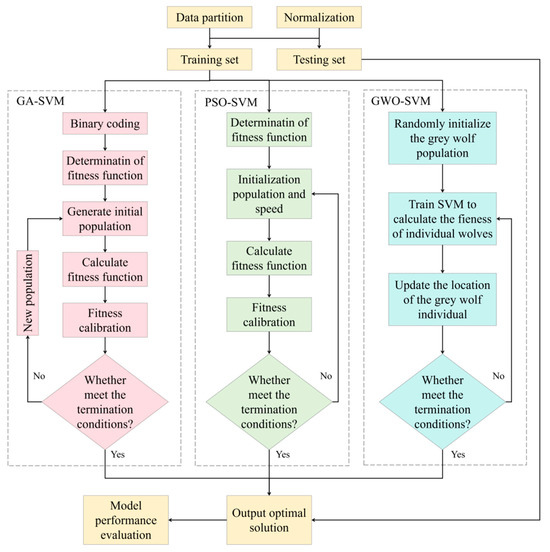 - Calculate the indicators for the fitness function and determine the corresponding penalty coefficient C and Gaussian kernel function radius g based on the minimum fitness value after cross-validation convergence;