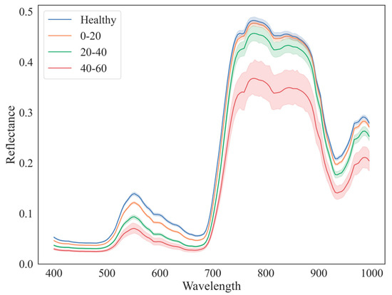 3.1. Spectral Analysis of Cotton Canopy Verticillium Wilt
