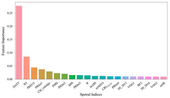| Vegetation Index | DATT, WI, PRI515, PRIm1, Chl_rededge, PSRI, PRIm2, SIPI, PRIm3, R |