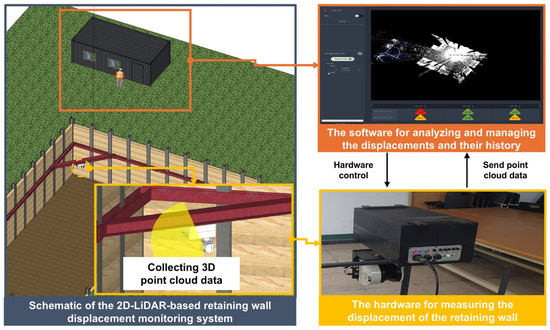 - Kim, J.S.; Lee, G.Y.; Kim, Y.S. 2D-LiDAR-Sensor-Based Retaining Wall Displacement Measurement System. Appl. Sci. 2022, 12, 11335. [Google Scholar] [CrossRef]
