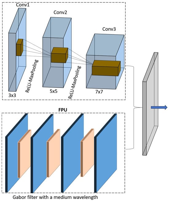 The FPU is designed to extract frequency-domain features from the input images Figure 2. Wildfire detection often involves detecting subtle texture variations, such as smoke patterns, which are better captured in the frequency domain than in the spatial domain. The FPU leverages the Fractional Gabor Transformer (FGT) to enhance texture extraction and noise suppression, particularly for distinguishing smoke from background noise. The FPU divides the input feature map into frequency components using a Fractional Gabor Filter (FGF). This filter applies multiple Gabor filters at different scales and orientations to detect textures: