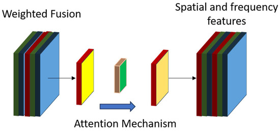 This figure represents the CSU, which is responsible for fusing the spatial and frequency features extracted by the SPU and the FPU. The CSU is responsible for adaptively fusing the spatial and frequency-domain features extracted by the SPU and the FPU, ensuring that only the most informative features are retained for wildfire and smoke detection. The CSU operates by calculating channel-wise attention scores for the spatial and frequency feature maps. These scores are derived using learned weights and a sigmoid activation function, which assigns importance to each feature channel based on its contribution to the detection task.