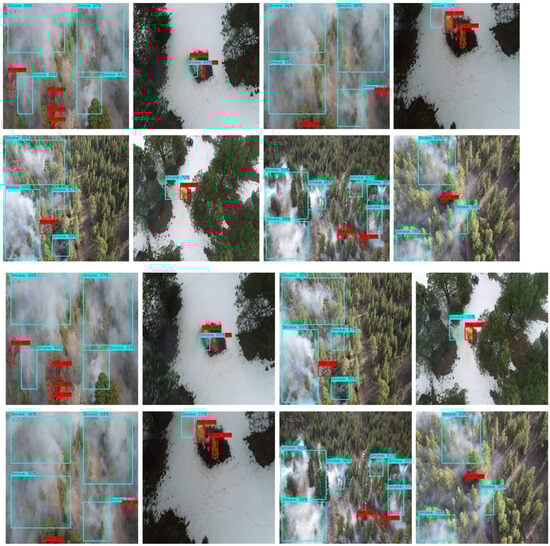 An ablation study was conducted to assess the contribution of various components in the AMSO-SFS model. The performance of the model was evaluated both with and without key modules to understand their impact. The SFS-Conv module was one of the elements under investigation, focusing on how its selective processing of spatial and frequency features influences the model’s ability to detect fire and smoke efficiently. Another aspect of the study examined the multi-sensor fusion process, where data from optical, IR, and Synthetic Aperture Radar (SAR) sensors are combined. The aim was to determine whether the integration of these multiple data sources significantly enhances the model’s detection accuracy, compared to using a single sensor. Additionally, the study explored the use of weakly supervised learning, which leverages point-based annotations rather than full bounding boxes during training. This part of the study aimed to assess the model performance when trained with limited labeling information. It also examined whether the weak supervision approach allows the AMSO-SFS model to effectively generalize in detecting fire and smoke. Through this ablation study, the contribution of each module to the overall model performance was clarified, as shown in Table 4.