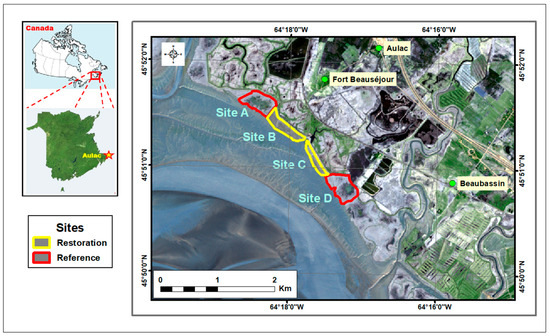 Naojee, S.M.; LaRocque, A.; Leblon, B.; Norris, G.S.; Barbeau, M.A.; Rowland, M. Monitoring Saltmarsh Restoration in the Upper Bay of Fundy Using Multi-Temporal Sentinel-2 Imagery and Random Forests Classifier. Remote Sens. 2024, 16, 4667. https://doi.org/10.3390/rs16244667