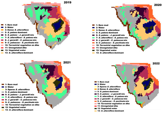 | 13 | S. alterniflora dominant | 92.5 | 94.9 | 96.9 | 93.9 | 84.4 | 93.1 | 93.8 | 100.0 |
