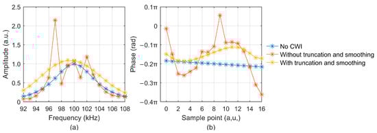 Feature comparison under different processing methods: (a) amplitude spectrum; (b) phase difference curve.