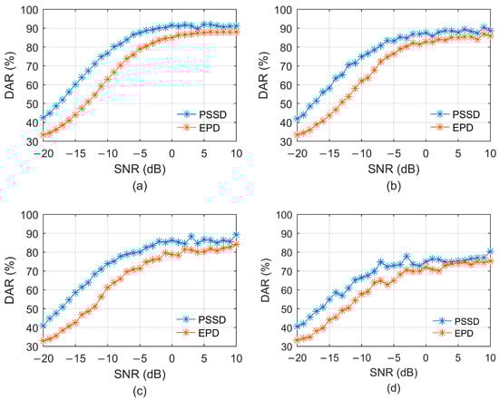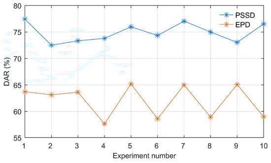 Based on the well-designed experiments, the results below visually present the DAR comparison of PSSD and EPD algorithms under various interference conditions.