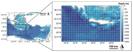 - Petihakis, G.; Perivoliotis, L.; Korres, G.; Ballas, D.; Frangoulis, C.; Pagonis, P.; Ntoumas, M.; Pettas, M.; Chalkiopoulos, A.; Sotiropoulou, M.; et al. An Integrated Open-Coastal Biogeochemistry, Ecosystem and Biodiversity Observatory of the Eastern Mediterranean—The Cretan Sea Component of the POSEIDON System. Ocean Sci. 2018, 14, 1223–1245. [Google Scholar] [CrossRef]