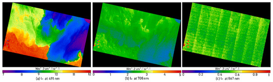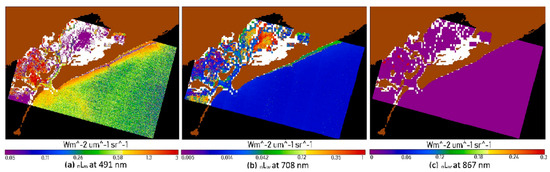 Venice nLw product for (a) 491 nm, (b) 708 nm, and (c) 867 nm.
