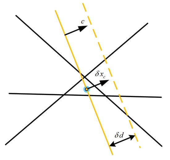 The solution to Equation (25) is . When the introduced additional constraint is shifted by a distance along its normal vector, Equation (25) becomes:
