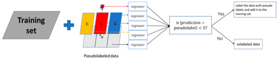 Secondly, pseudo labels were considered trustworthy if the absolute difference between their predicted values and the assigned pseudo labels fell below a predetermined threshold (δ), which was determined through iterative experimentation.