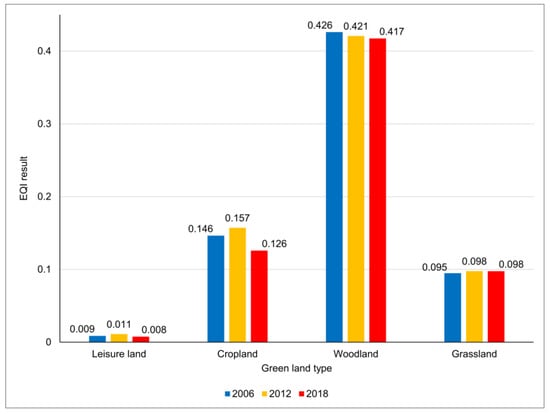 EQI of various types of land use in BMR green areas from 2006 to 2018.