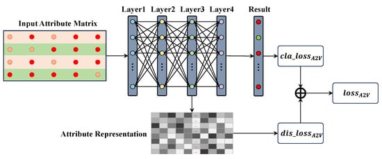Due to the inherent limitations of manually designing and extracting structural attribute features, directly applying the encoding method described in Section 3.3 to inject structural attributes can only provide a coarse reflection of structural correlations between categories. This rudimentary encoding design may lead to issues during training, particularly caused by unreasonable inter-class distances, which can cause the model’s accuracy curve to fluctuate and become unstable [40]. To address this issue, we introduce the A2V module. The primary function of the A2V network is to embed the low-dimensional structural attribute encoding into a higher-dimensional structural space. This high-dimensional space allows for a more refined and effective representation of structural attributes, improving separability between categories and improving the model’s learning capability [41]. By adopting this approach, the representation of structural attributes is significantly improved, ensuring model convergence and stabilizing accuracy during training, ultimately improving overall recognition performance.