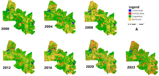 The datasets from Landsat serial time that were collected throughout the study region over the course of the last 24 years using the Landsat sensors mentioned above are offered at the following intervals: 2000, 2004, 2008, 2012, 2016, 2020, and 2023.