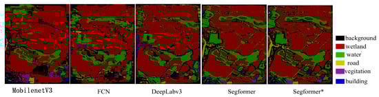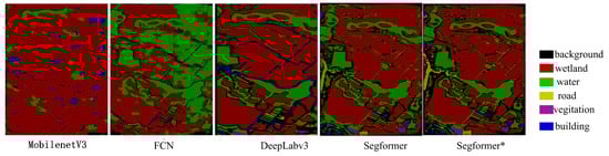 UAV-based MS imagery has emerged as a valuable tool across various domains, including agriculture, environmental monitoring, urban planning, and disaster management. This technology provides detailed spectral information that supports analysis and decision-making processes. However, extracting and interpreting this information from the complexity and variability of captured scenes remains a significant challenge. Ongoing research and advancements in image processing algorithms and techniques are essential to develop advanced methods capable of extracting meaningful data from UAV MS imagery, thereby maximizing the potential of UAV remote sensing for wetland monitoring. As illustrated in Figure 1, deep learning [20,21,22,23], image semantic segmentation methods offer great promise in this regard. Notably, deep learning models, such as fully convolutional networks (FCNs) [24], DeepLab [25,26,27,28], SegNet [29], Unet [30], MobilenetV3 [31], and those based on transformer methods [32,33,34,35,36], have demonstrated significant progress in image segmentation tasks. Among these, the Segformer [37] model stands out for its ability to achieve high accuracy efficiently. This makes it particularly suitable for processing the large-scale UAV datasets typically used in wetland studies. By training the model on extensive and diverse datasets, it can learn to recognize and classify different wetland classes, such as water bodies, vegetation types, and landforms. The application of the Segformer model to wetland monitoring can provide valuable insights into the dynamics and health of wetland ecosystems. Recent studies have demonstrated the capability of deep learning models to process complex datasets and provide detailed insights into wetland ecosystems, which is crucial for understanding their health and dynamics [38,39,40,41,42,43,44,45].