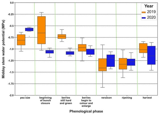 - Suter, B.; Triolo, R.; Pernet, D.; Dai, Z.; Van Leeuwen, C. Modeling Stem Water Potential by Separating the Effects of Soil Water Availability and Climatic Conditions on Water Status in Grapevine (Vitis vinifera L.). Front. Plant Sci. 2019, 10, 1485. [Google Scholar] [CrossRef]
