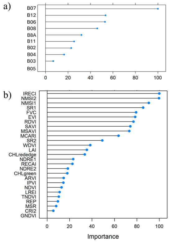 | Atmospherically Resistant Vegetation Index | ARVI | (B8A − B04 − 0.106 ∗ (B04 − B02))/(B8A + B04 − 0.106 ∗ (B04 − B02)) | [28] |