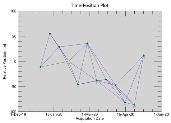 Spatiotemporal baseline combination diagram. (The third image, acquired on 22 January 2020, is the super master image).