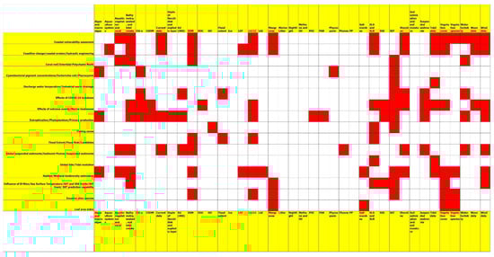 In conclusion, some authors compared available products with each other to minimize errors or with retrieved data to validate them, whereas others utilized available products to provide a complete view of all variables. The overview not only highlighted how the authors of the eligible papers utilized them but also showed that there are many coastal parameters available online, therefore highlighting the increased need for remote data for monitoring coastal areas.