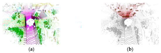 - Behley, J.; Garbade, M.; Milioto, A.; Quenzel, J.; Behnke, S.; Stachniss, C.; Gall, J. Semantickitti: A dataset for semantic scene understanding of lidar sequences. In Proceedings of the IEEE/CVF International Conference on Computer Vision, Seoul, Republic of Korea, 27 October–2 November 2019; pp. 9297–9307. [Google Scholar]