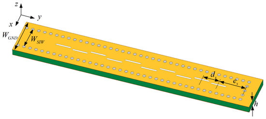 The substrate-integrated waveguide (SIW) is a planar microwave transmission technology that has been developed over the past two decades. In 1998, the concepts of “Post-wall Waveguide” and “Laminated Waveguide” were proposed, and they served as the prototype of SIW [1,2]. Furthermore, the concept of an SIW transmission line was formally introduced in 2001 in order to solve the problem of waveguide and plane circuit integration [3]. Eventually, in 2005, the guide wave and leakage characteristics of SIW were studied for the first time, which marked the perfection of the basic theoretical framework of SIW [4]. In the past few years, with the development of millimeter-wave circuit systems, the potential application value of SIW has been well explored due to its inherent advantages [5,6]. In contrast to microstrip lines that have been commonly used in recent years, the use of SIW results in lower transmission losses and a higher power capacity. Moreover, SIW is extensively utilized in vehicle-mounted radar systems due to its ease of processing and seamless integration with other planar circuits.