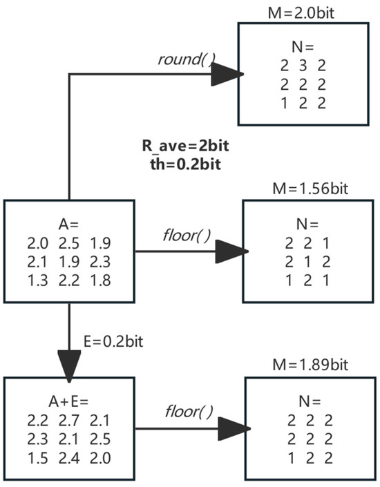 Taking the average bit quantization target of 2 bits as an example, the effect of bit allocation is shown in Figure 7. When utilizing the bit error control algorithm with the floor() function as the core, the average number of bits actually fails to reach the preset target in the uniform target scenario, while the BEC algorithm with the round() function as the core proves the effectiveness of its difference quantization.