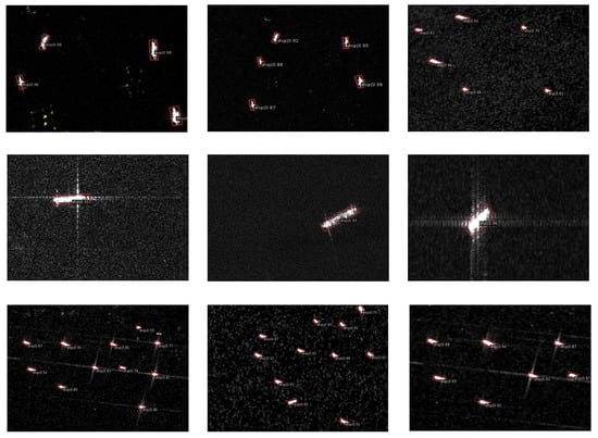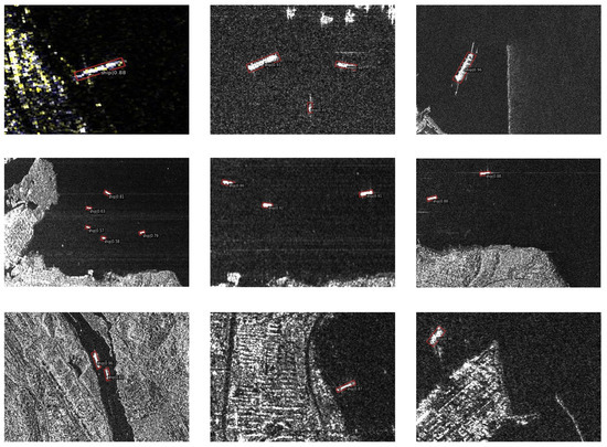 Detection results of SSDD offshore ship. The red oriented boxes indicate correct detection outcomes.