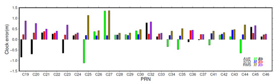 31]. In order to assess the clock error accuracy of the BDS-3 broadcast ephemeris, the time was unified as GPST.