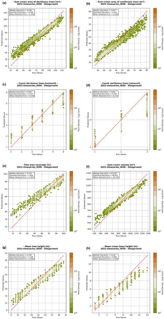 Amidst the growing recognition of the immense value of forest ecosystems in combating climate change and supporting biodiversity, the demand for rapid, precise, and robust methods to monitor these vital ecosystems is on the rise [1]. Forests, which shelter the majority of terrestrial biodiversity, span approximately 4.06 billion hectares, covering 31% of the world’s land surface. They function as crucial carbon reservoirs and play an indispensable role in climate regulation [2]. To effectively track the progress toward these goals, as well as to monitor deforestation, degradation, and forest responses to climate change, there is an increasing need for large-scale, cost-effective monitoring, ideally with automated data collection and processing up to the final information product. In the last decade, there has been a notable increase in the accessibility and application of remote sensing (RS) technologies, providing data with resolutions sufficiently fine to discern individual trees, as demonstrated in various references employing high-resolution data [3,4,5,6,7,8,9,10,11]. While this presents opportunities for enhancing our understanding of forests, it also poses challenges in data interpretation [12,13].