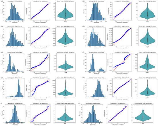 To establish predictive models, we employ a random forest regression approach [54]. Random forests (RFs) represent an ensemble learning technique that amalgamates the predictions of multiple decision trees, enhancing accuracy and robustness. RF, renowned for its precision in both classification and regression tasks, is capable of modeling complex variable interactions and effectively handling outliers. Its robustness is exemplified by its ability to run efficiently on large datasets, insensitivity to noise and overfitting, and the capacity to handle numerous input variables without the need for variable deletion. This stands in contrast to other machine learning algorithms like artificial neural networks (ANNs) or support vector regression (SVR), which often involve more intricate parameter tuning, making model construction more complex, whereas RF boasts fewer parameters, simplifying model construction [55,56].