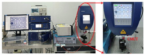 To assess the electrical, vibration, and acoustic performance of the CMUT, tests are conducted to verify the suitability of the manufactured ultrasonic transducer for underwater applications. The wafer is cut into individual CMUT elements. The upper electrode of the CMUT is wire-bonded to the PCB and the wires are then soldered for performance testing.
