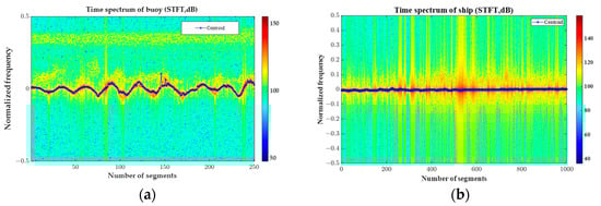 It is evident that the Doppler spectrum centroid sequences of ship targets and floating small targets exhibit significantly different patterns of variation. The centroid sequences of ship targets predominantly cluster at approximately 0 Hz and demonstrate relative stability with minimal fluctuations. In stark contrast, the centroid sequences of floating small targets exhibit substantial oscillations, approximating a certain periodicity. Consequently, it is feasible to distinguish between ship targets and floating small targets by analyzing the temporal evolution patterns of these centroid sequences.