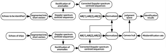 Integrating the aforementioned procedures, this chapter proposes a method for floating small target classification and identification grounded on the temporal information of Doppler spectrum centroids. This method delineated in this chapter encompasses two integral components: training and classification identification. Prior to commencing the formal identification work, it is necessary to gather a substantial dataset of ship target echo data, from which the Doppler spectrum centroid sequences are extracted. Following the removal of outliers, a refined centroid sequence is obtained. This sequence is then modeled using the AR (3) framework, facilitating the extraction and normalization of a plethora of secondary features AR (1), AR (2), and AR (3). Ultimately, by employing the convex hull learning algorithm in accordance with a predetermined ship target misjudgment rate, a decision region is established. During the classification and identification phase, the target echo data slated for categorization are processed through the same procedure to acquire normalized secondary feature vectors of the centroid sequence. Classification and identification are achieved by assessing the position of these vectors relative to the established decision region. The block diagram of the method is shown in