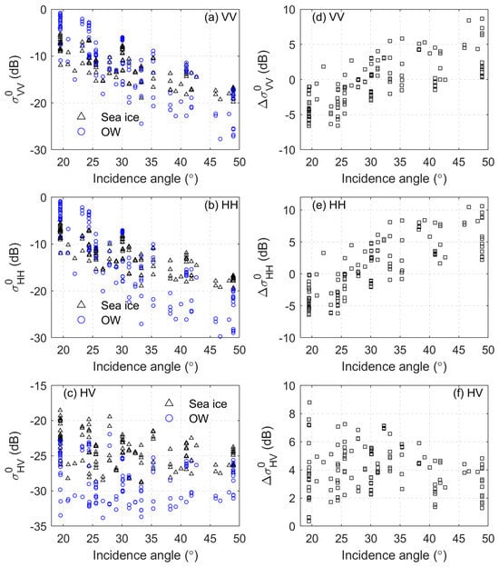 3.1. Polarimetric Characteristics of Sea Ice and OW