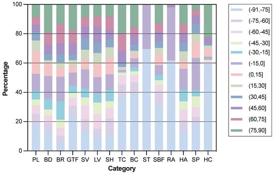 Angle distribution of objects in each category of the DOTA-v1.0 dataset.
