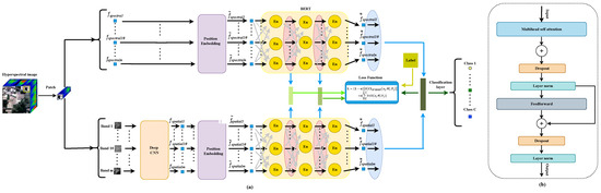 Since hyperspectral imagery can capture hundreds of spectral bands, it can provide richer spectral information to address the classification task. Moreover, these data have great potential for other Earth observation applications, including, but not limited to, the monitoring of the environment and the change detection in urban areas [1,2]. HSI classification (HSIC) methods exploit different spatial and spectral information to identify pixels’ labels, which play a vital role in lots of applications, such as mineral exploration [3], environmental monitoring [4], and precision agriculture [5]. To achieve accurate hyperspectral image classification (HSIC), many different methods, such as classical methods [6], convolutional neural networks CNNs [7], and transformers [8,9], have been studied to identify each pixel’s label in the past and current decades. State-of-the-art techniques utilize feature extraction to obtain state-of-the-art outcomes [10,11].