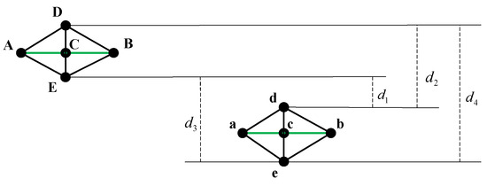 (b) Vertex distance. As shown in Figure 6, the direction vectors and also satisfy the constraint of Equation (8), which cannot effectively eliminate the false pairs of parallel line segments. Thus, we increase the constraint of the vertical distance between the two vertices of the triangular areas inside the runway as follows: