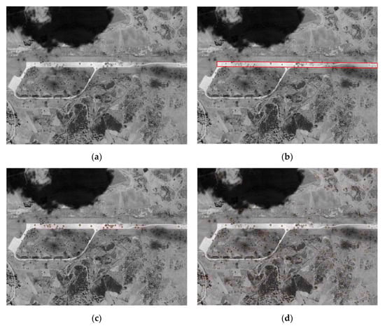 In recent years, many scholars have carried out research on object detection and extraction based on remote-sensing images [6,7,8]. At the same time, airport runway extraction has gained increasing attention in remote-sensing image processing, because airport runway information accurately extracted from remote-sensing images is very useful for airport planning [9,10], airplane extraction [11], foreign object debris detection [12,13] and military applications (such as reconnaissance) [14]. Also, extracting airport runway information from remote-sensing data is helpful for extracting craters in the runway and the subsequent battle damage assessment. However, due to the influence of crater distribution, explosion dust coverage, ablation and other factors, the airport runway has incomplete characteristics; auxiliary features such as chevron markings at both ends of the runway are missing or unclear, the long line segment feature on the edge of the runway is missing, etc. All these factors bring challenges to the complete extraction of runways, and then make it difficult to extract craters inside the runway. Therefore, the complete extraction of damaged airport runways and the accurate extraction of craters inside runways are important prerequisites for assessing the functional damage effect of airport runways.