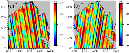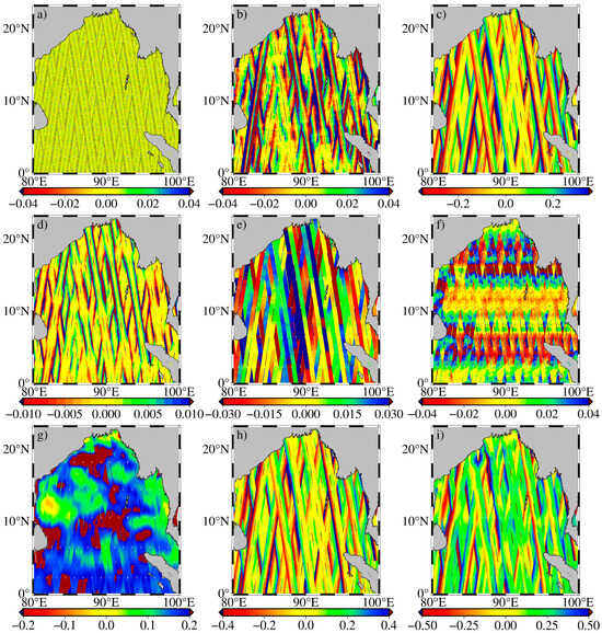 From Figure 10, we can see that 19-cycle errors are significantly smaller compared with Figure 3. This indicates that it is necessary to process SSH data for ascending and descending orbits separately mentioned in Section 2.